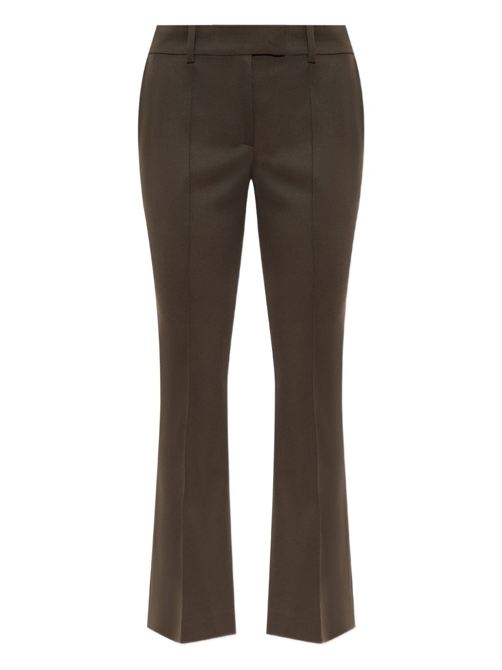 wool trousers Highlights - Dark brown - High waist - Centre-crease detail - Zip fly - Back pocket metal logo Made in Italy Composition Outer: Virgin Wool 98%, Elastane 2% Lining: Viscose 100%