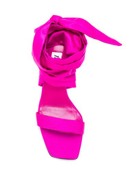 wraparound ankle tie sandals Highlights - Fuchsia pink - Leather/satin - Wraparound ankle tie fastenings - Open toe - Branded insole - High heel Made in Italy Composition Lining: Leather 100% Sole: Leather 100% Outer: Satin 100% SIZE & FIT Measurement HEEL 3.93 in(10 cm)