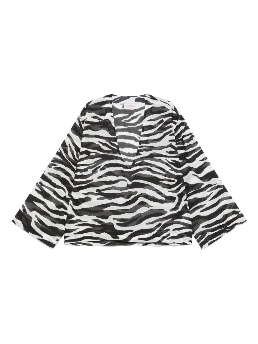 zebra-print blouse Highlights - Black/white - V-neck - Semi-sheer construction - Long sleeves - Straight hem Made in Italy Composition Cotton 100% SIZE & FIT Model measurements Height 5 ft 10 in(1.79 m) Bust/Chest 35.43 in(90 cm) Hips 35.03 in(89 cm) Waist 25.19 in(64 cm) FittingInformation Designed to be unstructured, offering a loose fit throughout Made from a lightweight non-stretch fabric