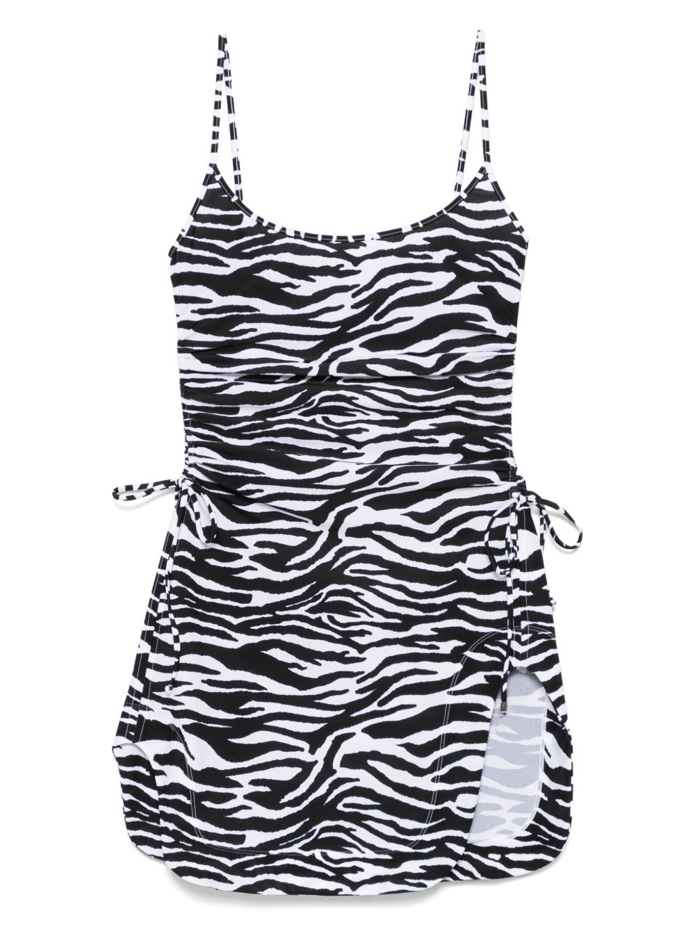 zebra-print mini dress Highlights - White - Side slit - Thin shoulder straps - Sleeveless - Ruched detailing Imported Composition Polyamide 80%, Elastane 20% SIZE & FIT Model measurements Height 5 ft 10 in(1.79 m) Bust/Chest 35.43 in(90 cm) Hips 35.03 in(89 cm) Waist 25.19 in(64 cm) FittingInformation Designed for a close fit throughout Made from a lightweight stretch fabric, this piece offers elasticity and flexibility when worn