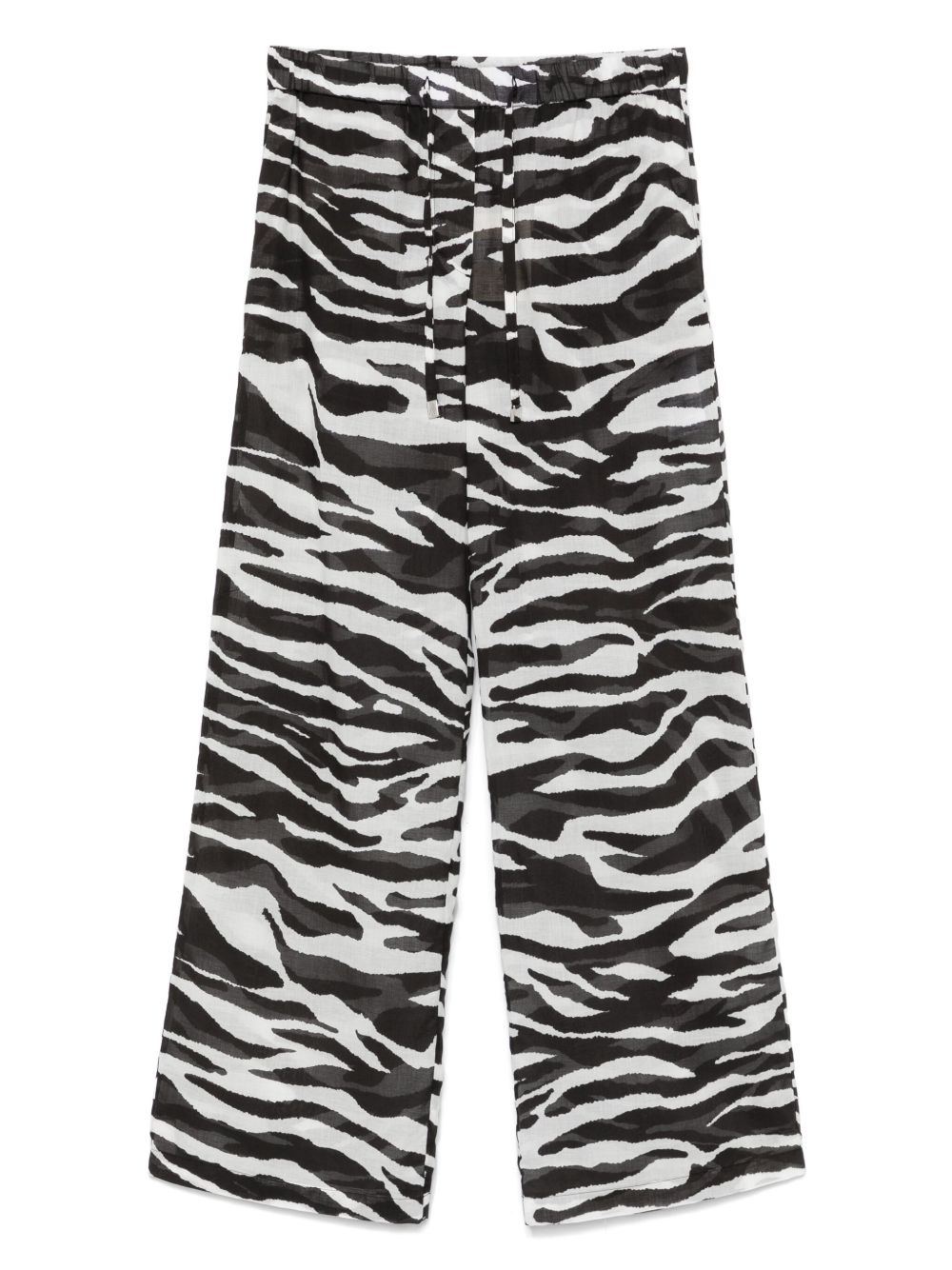 zebra-print sheer trousers Highlights - Black - Elasticated drawstring waistband - Two side inset pockets - Rear patch pocket Made in Italy Composition Cotton 100% SIZE & FIT Model measurements Height 5 ft 10 in(1.78 m) Bust/Chest 33.46 in(85 cm) Hips 36.22 in(92 cm) Waist 23.22 in(59 cm) FittingInformation Designed with a wide-leg cut, these trousers allow for a close fit at the waist and offer a loose and roomy fit over the leg The elasticated waist allows for a comfortable fit Made from a lightweight non-stretch fabric