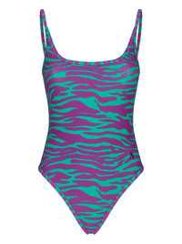 zebra-print swimsuit Highlights - Purple - Zebra print - Scoop neck - Thin straps - Low back - High-leg cut - Be mindful to try on swimwear over your own garments. Made in Italy Composition Outer: Polyamide 80%, Elastane 20% Lining: Polyamide 84%, Elastane 16% Washing instructions Read Manufacturer Guidelines