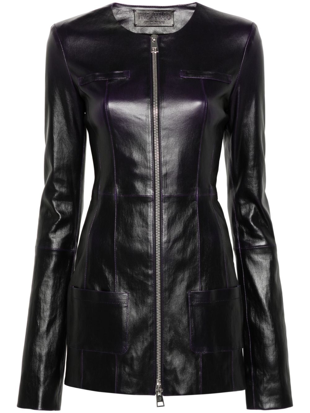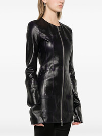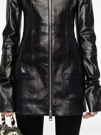 zip-up leather jacket Highlights - Black - Lambskin - Contrast stitching - Crew neck - Long sleeves - Faux pocket detail - Two front patch pockets - Straight hem - Thigh-length - Silver-tone hardware - Branded zip puller - Front two-way zip fastening Imported Composition Lining: Cotton 100%, Acetate 60%, PBT Elite 40% Outer: Lambskin 100% SIZE & FIT Model measurements Height 5 ft 9 in(1.75 m) Bust/Chest 31.88 in(81 cm) Hips 34.64 in(88 cm) Waist 24.01 in(61 cm) Measurement SLEEVE LENGTH 29.48 in(74.9 cm) HIPS 30 in(76.2 cm) LENGTH 30.51 in(77.5 cm) WAIST 24.01 in(61 cm) BUST 30.98 in(78.7 cm) FittingInformation Designed for a close fit throughout The internal shoulder pads offer a structured shape Soft leather has a supple and smooth construction offering some flexibility This piece fits very small – take two sizes up