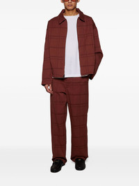 check-patterned zip-up jacket Highlights - Burgundy - Front two-way zip fastening - Classic collar - Long sleeves - Straight hem Imported Composition Cotton 99%, Elastane 1%