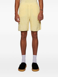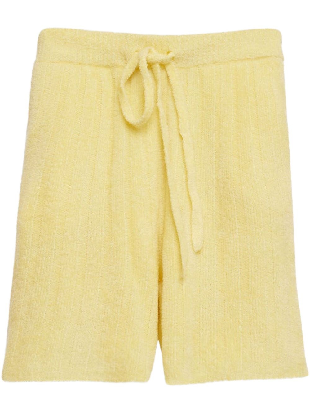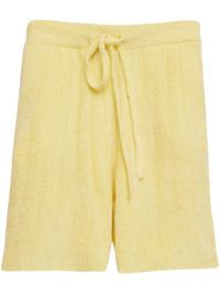 ribbed shorts Highlights - Yellow - Drawstring waist - Two side slit pockets - Ribbed cuffs and hem Made in United States Composition Wool 38%, Nylon 35%, Silk 27%