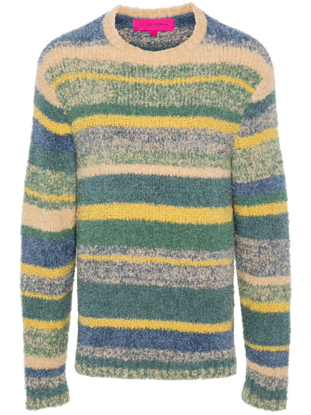 striped jumper Highlights - Cerulean blue/multicolour - Alpaca wool - Chunky knit - Brushed finish - Horizontal stripe pattern - Crew neck - Long sleeves - Straight hem Made in United States Composition Cashmere 61%, Silk 23%, Alpaca Wool 16% SIZE & FIT Model measurements Height 6 ft 1 in(1.85 m) Bust/Chest 35.82 in(91 cm) Hips 37.79 in(96 cm) Waist 29.13 in(74 cm) FittingInformation Designed for a relaxed fit, this piece allows for comfort and movement when worn Made with a midweight knit, this piece offers some stretch This piece fits true to size – take your usual size