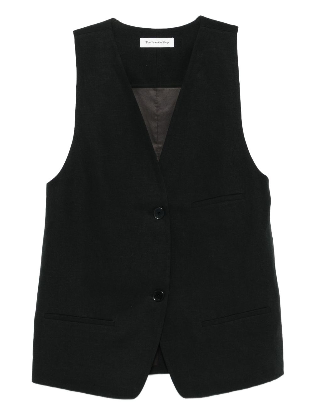 Melrose waistcoat Highlights - Black - Front button fastening - V-neck Imported Composition Lining: Polyester 100% Outer: Lyocell 67%, Linen/Flax 43% SIZE & FIT Model measurements Height 5 ft 10 in(1.79 m) Bust/Chest 31.88 in(81 cm) Hips 35.43 in(90 cm) Waist 23.62 in(60 cm) Washing instructions Hand Wash