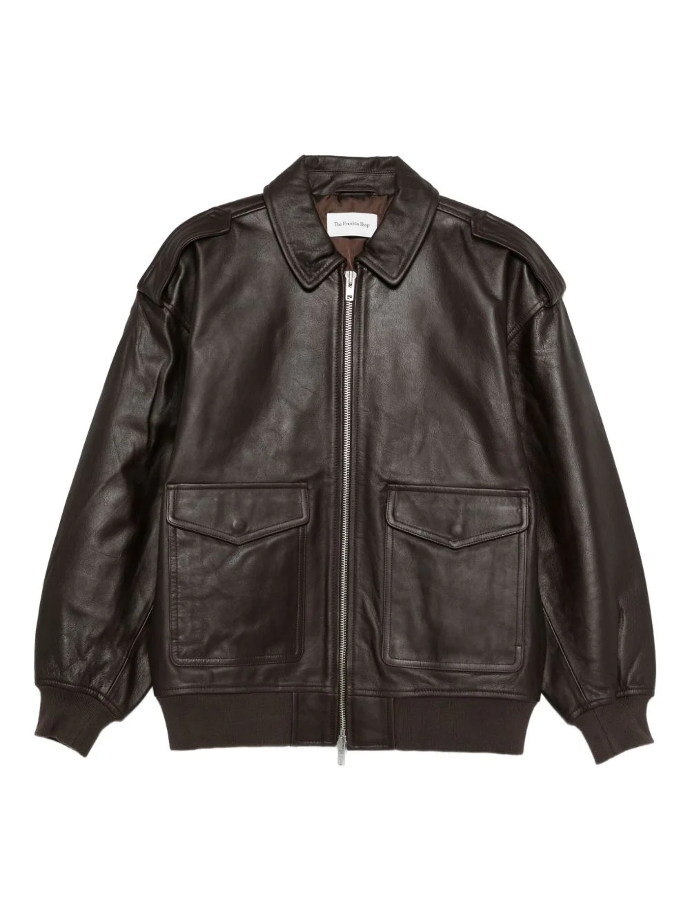 zip-fastening leather jacket Highlights - Brown - Point collar - Zip fastening - Two front flap pockets - Long sleeves - Ribbed hem Imported Composition Leather 100% SIZE & FIT Model measurements Height 5 ft 9 in(1.76 m) Bust/Chest 31.88 in(81 cm) Hips 35.43 in(90 cm) Waist 24.8 in(63 cm) Washing instructions Read Manufacturer Guidelines