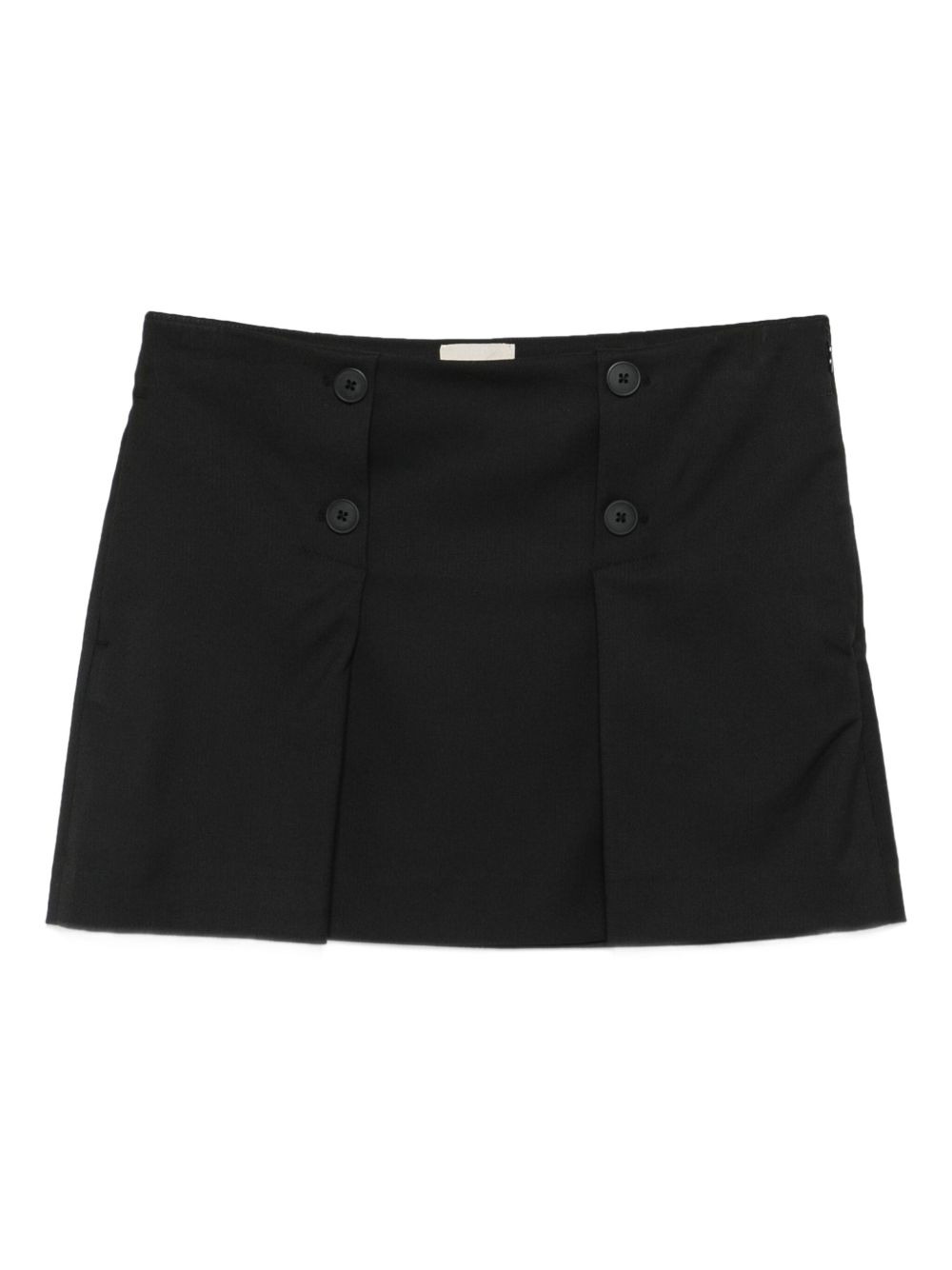 button-front mini skirt Highlights - Black - Button fastening - A-line shape - Mini length - Straight hemline Imported Composition Recycled Polyester 55%, Viscose 37%, Elastane 8% SIZE & FIT Model measurements Height 5 ft 10 in(1.78 m) Bust/Chest 33.46 in(85 cm) Hips 36.22 in(92 cm) Waist 23.22 in(59 cm) Washing instructions Dry Clean Only