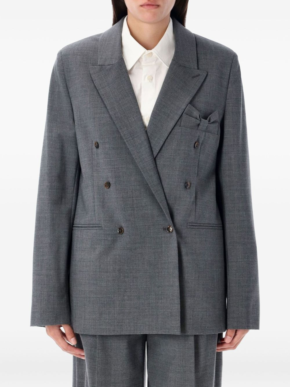 double-breasted bow-detail blazer Highlights - Grey - Double-breasted fastening - Bow detail pocket - Button cuffs - Welt pockets Imported Composition Outer: Polyester 53%, Wool 43%, Elastane 4% Lining: Viscose 100% Washing instructions Read Manufacturer Guidelines