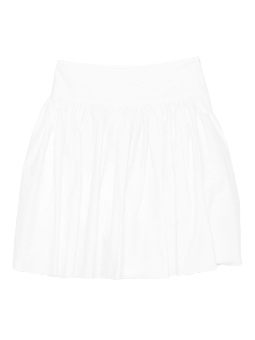 flared mini skirt Highlights - White - Gathered waist - A-line shape Imported Composition Organic Cotton 98%, Elastane 2% SIZE & FIT Model measurements Height 5 ft 10 in(1.78 m) Bust/Chest 33.46 in(85 cm) Hips 36.22 in(92 cm) Waist 23.22 in(59 cm) Washing instructions Machine Wash