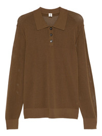 mesh polo top Highlights - Brown - Mesh texture - Polo neck - Button fastening - Long sleeves - Ribbed hem Imported Composition FSC Viscose 83%, Polyester 17% Washing instructions Read Manufacturer Guidelines