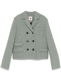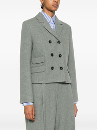 Mille blazer Highlights - Medium grey - Wool blend - Gabardine weave - Double-breasted button fastening - Notched lapels - Shoulder pads - Long sleeves - Chest welt pocket - Three front flap pockets - Full lining - Straight hem Imported Composition Outer: Wool 60%, Polyester 30%, Polyamide 6%, Other fibres 4% Lining: Viscose 100% SIZE & FIT Model measurements Height 5 ft 10 in(1.77 m) Bust/Chest 33.07 in(84 cm) Hips 37 in(94 cm) Waist 24.8 in(63 cm) FittingInformation Designed to be unstructured, offering a loose fit throughout The internal shoulder pads offer a structured shape Made from a midweight non-stretch fabric