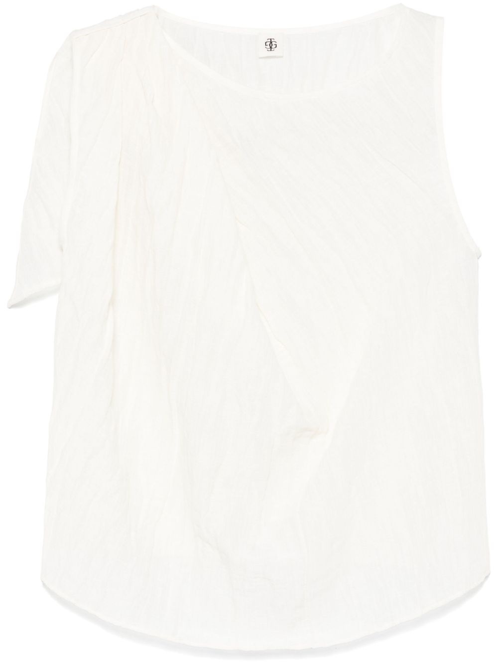 semi-sheer top Highlights - White - Unlined - Sleeveless - Gathered detailing Imported Composition Linen/Flax 67%, Cotton 28%, Polyamide 5%