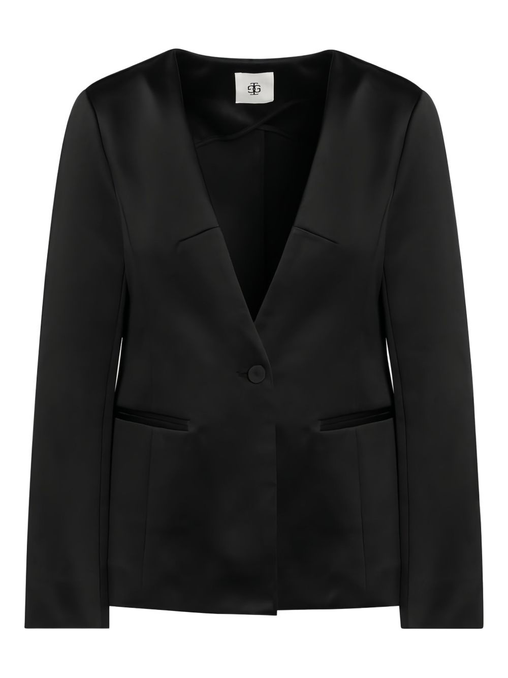 single-breasted blazer Highlights - Black - Front button fastening - Long sleeves - Two side slit pockets - Buttoned cuffs Imported Composition Outer: Recycled Polyester 59%, Cotton 41% Lining: Cotton 100% Washing instructions Read Manufacturer Guidelines