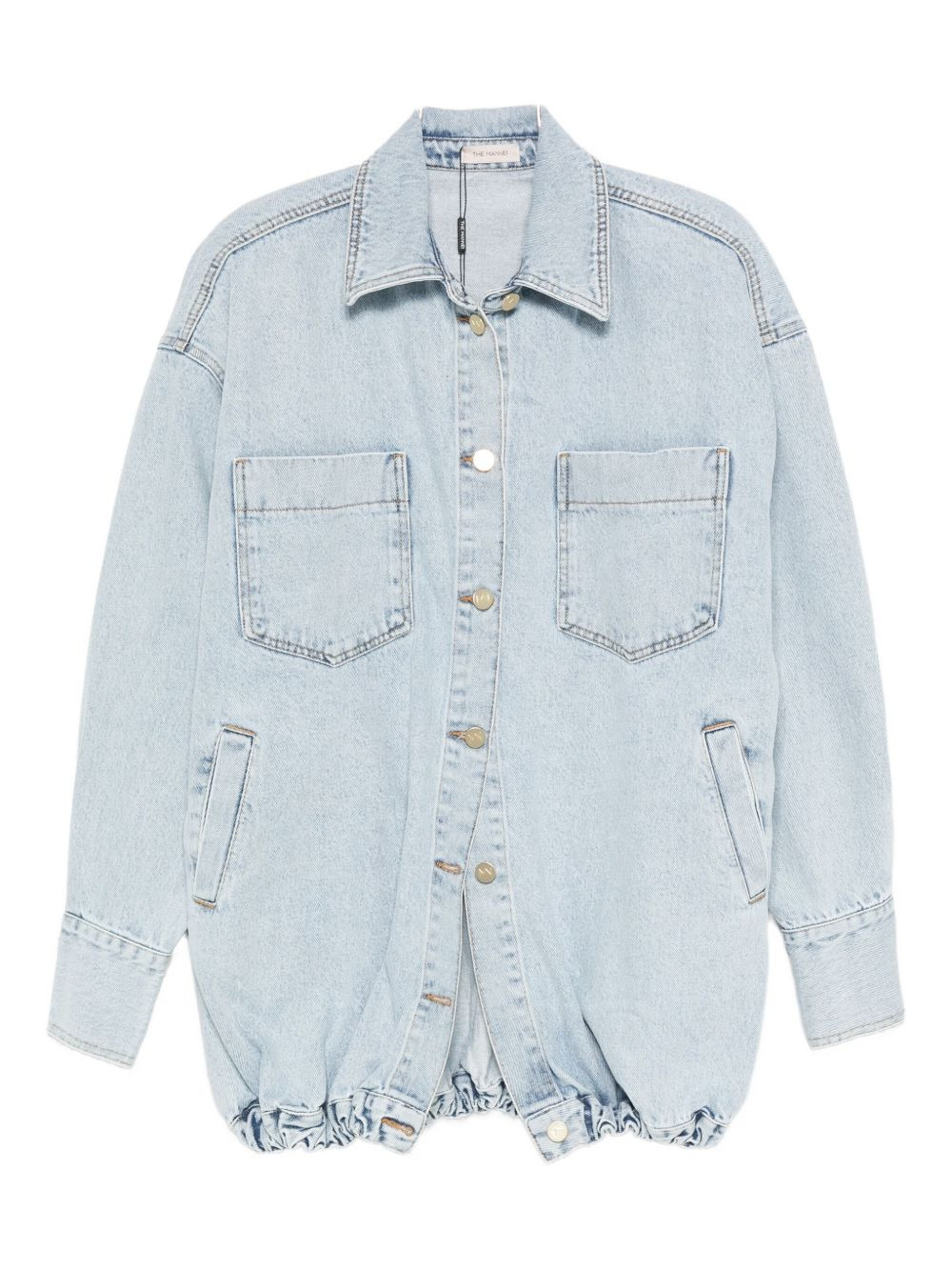 drop-shoulder denim jacket Highlights - Light blue - Front button fastening - Two chest patch pockets - Two side welt pockets - Elasticated hem - Buttoned cuffs Imported Composition Fabric 100% SIZE & FIT Model measurements Height 5 ft 10 in(1.77 m) Bust/Chest 32.28 in(82 cm) Hips 35.03 in(89 cm) Waist 25.19 in(64 cm) Washing instructions Read Manufacturer Guidelines