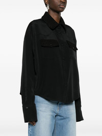 Toledo crochet knit-detail shirt Highlights - Black - Stretch-silk - Crochet knit details - Classic collar - Drop shoulder - Long sleeves - Press-stud fastening cuffs - Two chest flap pockets - High-low curved hem - Front press-stud fastening Imported Composition Silk 93%, Cotton 80%, Viscose 20%, Elastane 7% SIZE & FIT Model measurements Height 5 ft 10 in(1.77 m) Bust/Chest 32.28 in(82 cm) Hips 35.03 in(89 cm) Waist 25.19 in(64 cm) FittingInformation Designed to be unstructured, offering a loose fit throughout Made from a midweight stretch fabric, this piece offers elasticity and flexibility when worn This piece fits true to size – take your usual size