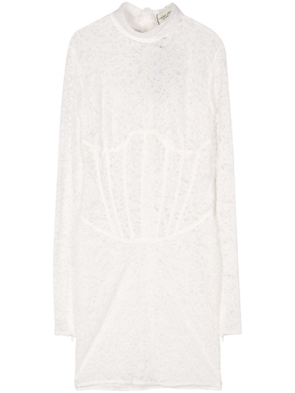 Isadora mini dress Highlights - Milk white - Lace design - Semi-sheer construction - Concealed rear hook and zip fastening - Stand-up collar - Long sleeves - Corset style - Boned bodice - Straight hem - Thigh-length Imported Composition Polyester 100% SIZE & FIT Model measurements Height 5 ft 9 in(1.75 m) Bust/Chest 31.88 in(81 cm) Hips 34.64 in(88 cm) Waist 24.01 in(61 cm) FittingInformation Designed for a close fit throughout Made from a midweight non-stretch fabric, this piece offers minimal elasticity when worn