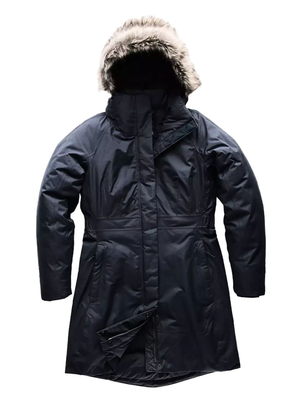 Arctic parka Highlights - Navy blue - Faux-fur trimmed hood - Front zip fastening - Two side slit pockets - Long sleeves Imported Composition Fabric 100% Washing instructions Read Manufacturer Guidelines