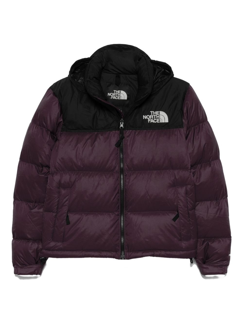 hooded puffer jacket Highlights - Dark purple - Down fill - Zip front fastening - Logo patch - Attached hood Imported Composition Nylon 100% Washing instructions Read Manufacturer Guidelines