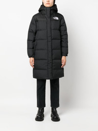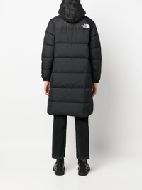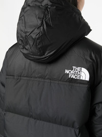 Nuptse hooded puffer coat Highlights - Black - Recycled down - Padded design - Quilted - Embroidered logo at the chest - Classic hood - High neck - Long sleeves - Two side inset pockets - Thigh-length - Straight hem Imported Composition Outer: Nylon 100%, Polyester 100% Lining: Polyester 100%, Recycled Feather Down 100% SIZE & FIT Model measurements Height 5 ft 10 in(1.78 m) Bust/Chest 30.7 in(78 cm) Hips 36.22 in(92 cm) Waist 25.59 in(65 cm) FittingInformation Designed to be unstructured, offering a loose fit throughout Made from a padded non-stretch fabric, giving it no natural elasticity This piece fits true to size – take your usual size Washing instructions Machine Wash