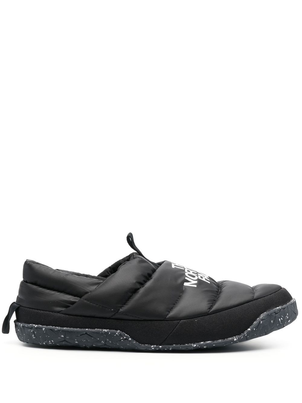 Nuptse logo-print puffer mules Highlights - Black/white - Padded design - Logo print to the front - Pull-tab at the tongue - Round toe - Branded footbed - Speckled sole - Slip-on style Imported Composition Body: Polyester 100% SIZE & FIT Measurement HEEL 0.98 in(2.5 cm) Sole height 0.39 in(1 cm)