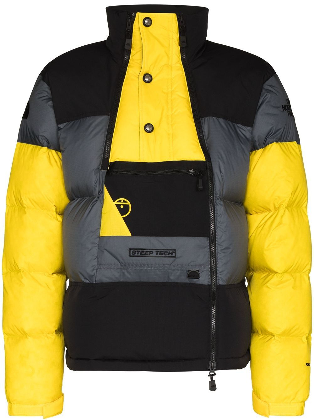 Steep Tech padded down jacket The North Face revives its Steep Tech collection, originally launched in 1991 as the brand's first line designed for ski athletes. Performance is the focus, evidenced it the jacket's insulated design and asymmetric bib fastening. Highlights - Yellow/black/grey - Recycled polyester - Padded design - Embroidered logo to the rear - Funnel neck - Front press-stud fastening - Off-centre front zip fastening - Long sleeves - Touch-strap cuffs Imported Composition Outer: Recycled Polyester 100%