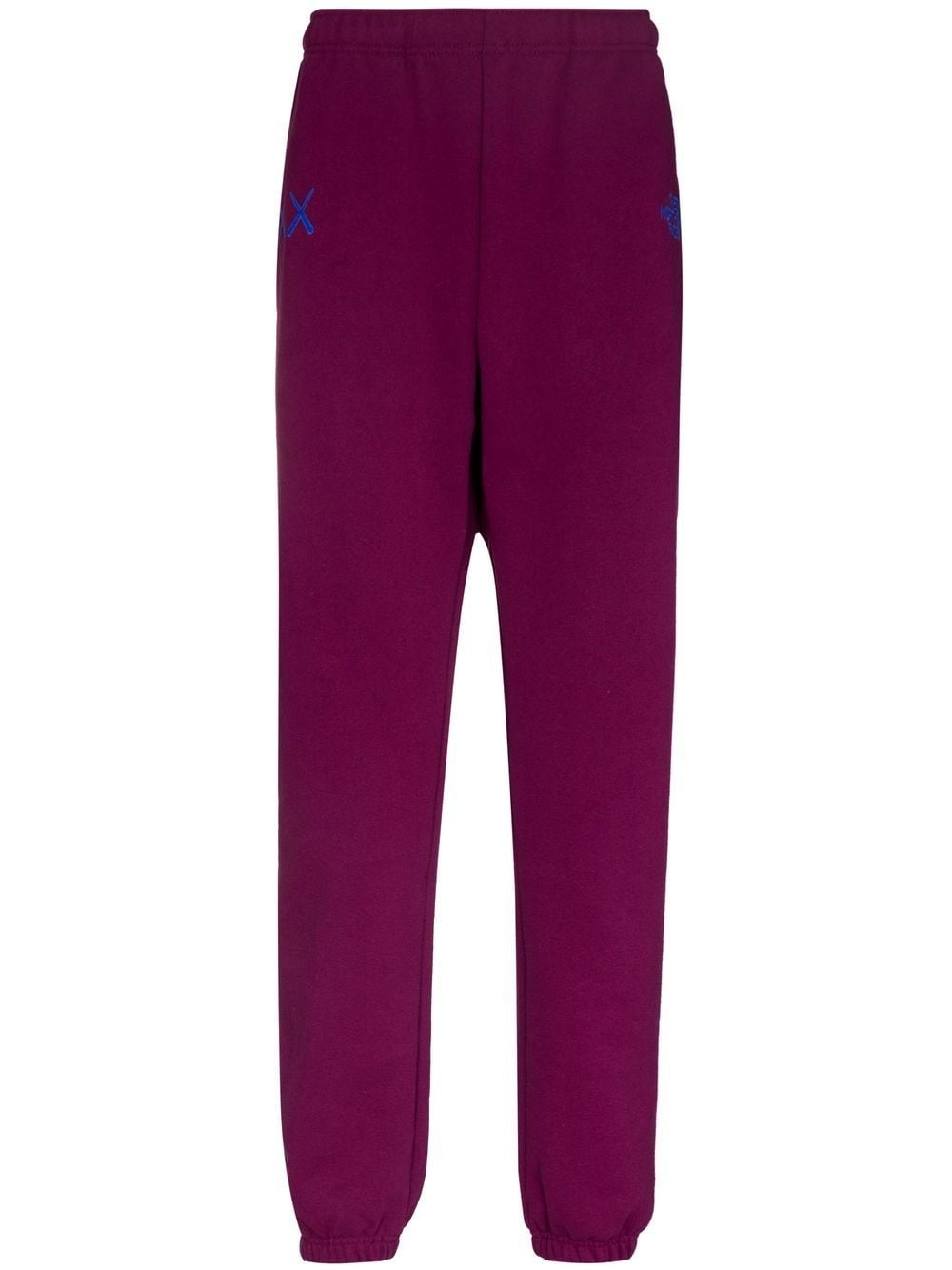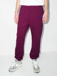 x KAWS track pants The North Face is back with another iconic collaboration, this time with the former graffiti artist and skateboarder KAWS. These Pamplona purple track pants are crafted from cotton and highlighted with the artist's iconic 'XX' motif and the brand's logo on the front, in a blue hue. Highlights - Dark purple - Cotton blend - Embroidered logo to the front - Elasticated waistband - Two side inset pockets - Elasticated ankles Imported Composition Cotton 76%, Polyester 24% SIZE & FIT Model measurements Height 6 ft 1 in(1.86 m) Bust/Chest 34.25 in(87 cm) Hips 35.82 in(91 cm) Waist 27.95 in(71 cm) FittingInformation This piece fits true to size. We recommend you get your regular size Designed to be loose over the leg with a fitted waist and hem Made with a mid-weight fabric