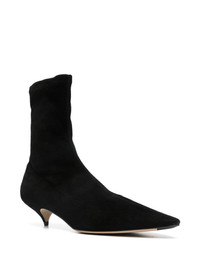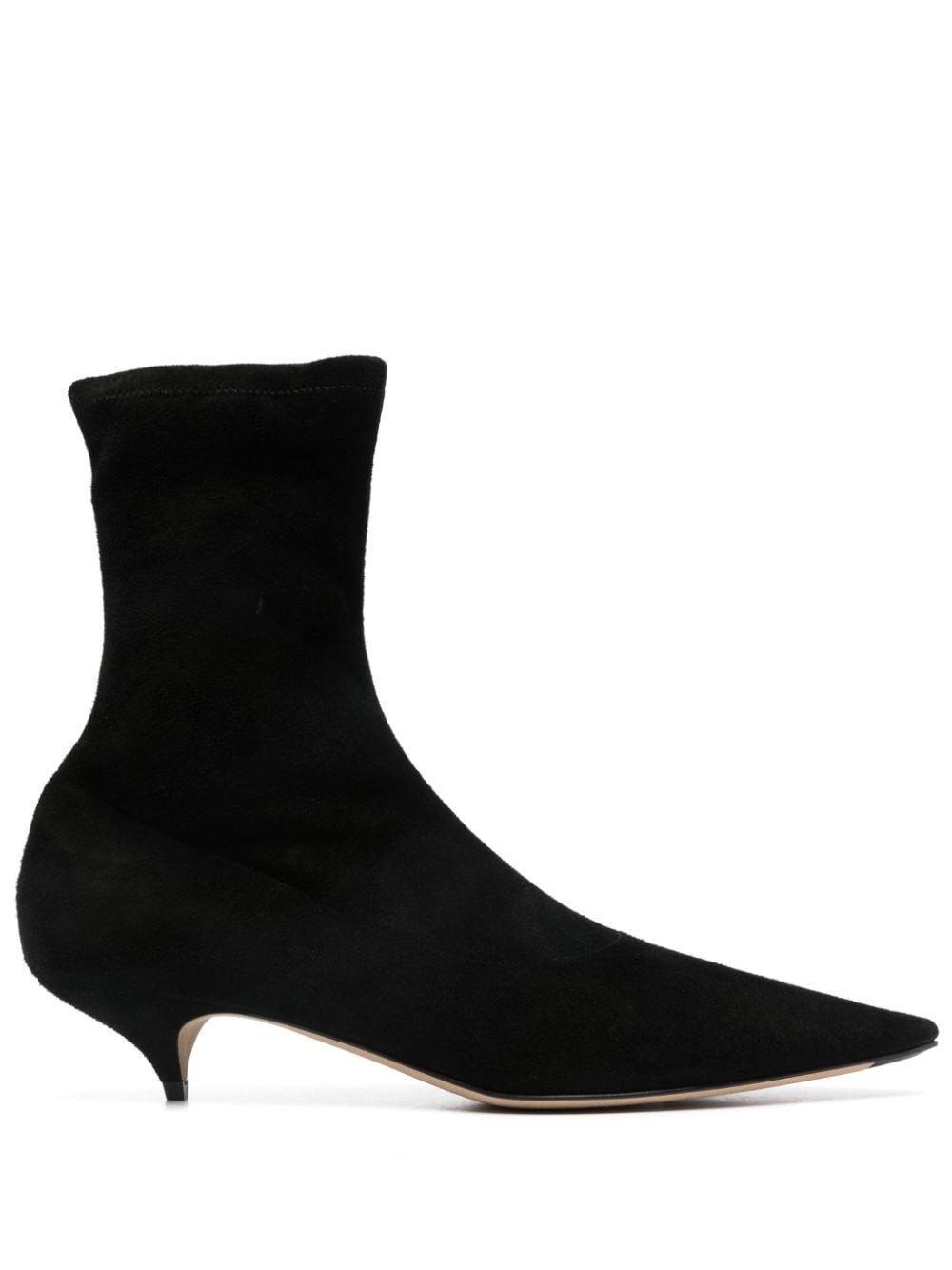 35mm Liisa boots Highlights - Black - Calf suede - 35mm kitten heel - Side zip fastening - Ankle-length - Pointed toe - Branded leather insole - Leather outsole Made in Italy Composition Suede 100% SIZE & FIT Measurement HEEL 1.96 in(5 cm) HEIGHT 7.08 in(18 cm) Sole height 0.39 in(1 cm)