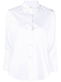crop-sleeve shirt white cotton blend crop sleeves classic collar front button fastening Made in United States Composition Cotton 97%, Elastane 3% SIZE & FIT Model measurements Height 5 ft 11 in(1.8 m) Bust/Chest 33.07 in(84 cm) Hips 37.4 in(95 cm) Waist 25.19 in(64 cm) Washing instructions Dry Clean Only