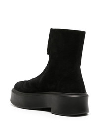 flatform suede ankle boots The Row imprints 'a sense of relaxed and timeless elegance' into each and every design, and these ankle boots are proof. Crafted from black suede, this utilitarian-inspired pair features a front zipper and a thick crepe sole. Highlights - Black - Calf suede - Ankle-length - Front zip fastening - Round toe - Branded leather insole - Flatform sole - Original box and papers included. Made in Italy Composition Sole: Rubber 100% Outer: Suede 100% Lining: Calf Leather 100% SIZE & FIT Measurement CIRCUMFERENCE 10.23 in(26 cm) HEEL 1.96 in(5 cm) HEIGHT 5.9 in(15 cm)