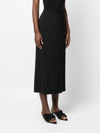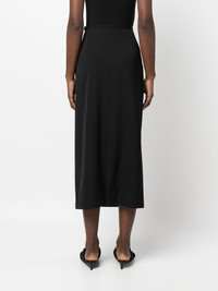 high-waisted midi skirt jet black high-waisted concealed side zip fastening straight hem mid-length Made in Italy Composition Viscose 60%, Virgin Wool 40% SIZE & FIT Model measurements Height 5 ft 10 in(1.77 m) Bust/Chest 29.92 in(76 cm) Hips 34.25 in(87 cm) Waist 23.62 in(60 cm) FittingInformation This piece fits true to size. We recommend you get your regular size Designed to be fitted at the waist and hips, loose over the leg Made with a mid-weight non-stretch fabric Washing instructions Dry Clean Only