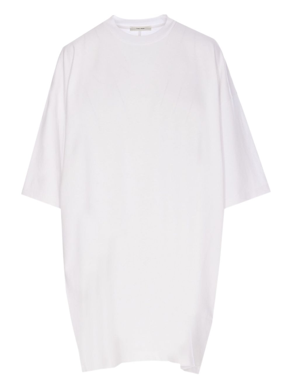 Isha Top in Cotton Midi-length oversized t-shirt in midweight cotton jersey with ribbed neckline, mid-length sleeve, and signature center back detail. Highlights - Optical white - Cotton - Jersey texture - Crew neck - Drop shoulder - Short sleeves - Signature center back detail - Straight hem Made in Italy Composition Cotton 100% Washing instructions Read Manufacturer Guidelines