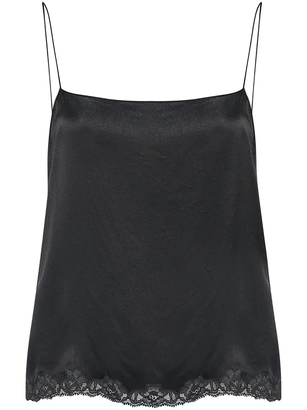 Kilari top Highlights - Black - Pull-on style - Spaghetti straps - Lace trim - Satin finish Made in Italy Composition Silk 100%, Cotton 90%, Polyamide 10% Washing instructions Read Manufacturer Guidelines
