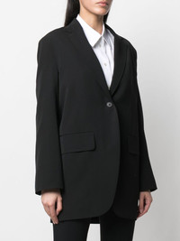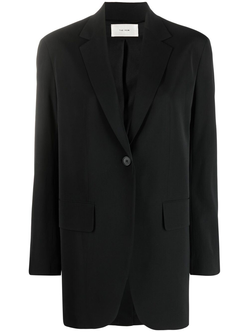 Obine single-breasted blazer black virgin wool-blend notched lapels front button fastening long sleeves two front flap pockets buttoned cuffs central rear vent Made in United States Composition Outer: Virgin Wool 59%, Cashmere 39%, Silk 2% Lining: Cupro 100% SIZE & FIT Model measurements Height 5 ft 10 in(1.78 m) Bust/Chest 33.07 in(84 cm) Hips 35.82 in(91 cm) Waist 25.98 in(66 cm) FittingInformation This piece fits true to size. We recommend you get your regular size Cut for a loose fit Made with a mid-weight non-stretch fabric Washing instructions Dry Clean Only