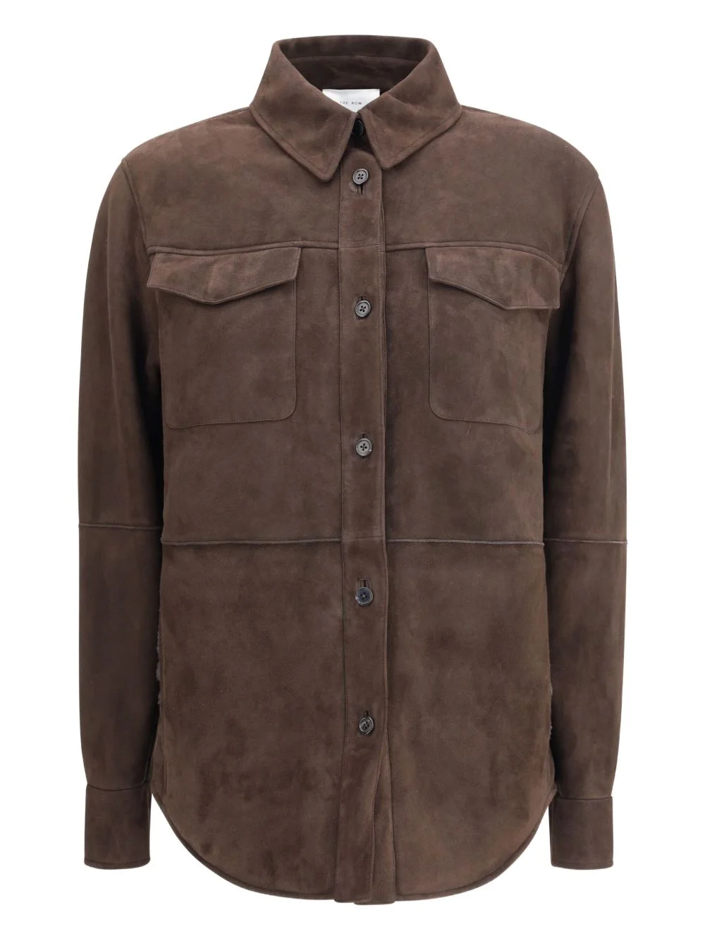 panelled suede shirt jacket Highlights - Dark brown - Lambskin leather - Button fastening - Patch pockets - Panelled construction Made in Italy Composition Lambskin 100% Washing instructions Read Manufacturer Guidelines
