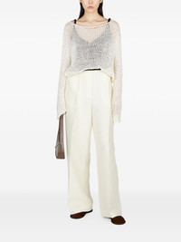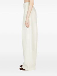 pressed-crease trousers Highlights - White - Concealed front fastening - Two side slit pockets - Pressed crease - Tailored cut Imported Composition Wool 77%, Silk 23% Washing instructions Dry Clean Only
