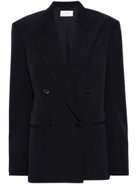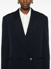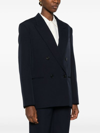 Sandon blazer Highlights - Navy blue - Virgin wool - Double-breasted button fastening - Peak lapels - Shoulder pads - Long sleeves - Buttoned cuffs - Chest welt pocket - Two front jetted pockets - Full lining - Straight hem Made in Italy Composition Lining: Silk 100% Outer: Virgin Wool 100% SIZE & FIT Model measurements Height 5 ft 10 in(1.78 m) Bust/Chest 31.49 in(80 cm) Hips 37 in(94 cm) Waist 23.62 in(60 cm) FittingInformation Designed for a boxy fit, intended for a loose fit throughout Made from a midweight non-stretch fabric Washing instructions Specialist Cleaning