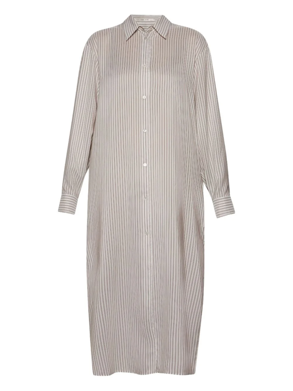 striped shirt dress Highlights - Off-white - Brown stripes - Collared neckline - Long sleeves - Button front fastening - Side slits Made in Italy Composition Silk 100% Washing instructions Read Manufacturer Guidelines