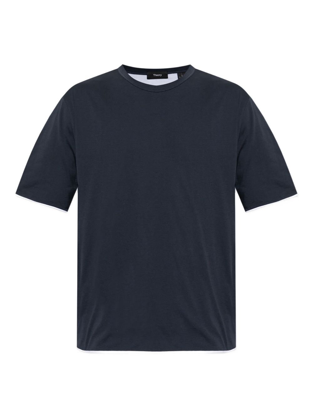 contrasting-trim T-shirt Highlights - Navy blue - Short sleeves - Crew neck - Contrasting trim - Straight hem Imported Composition Cotton 100% Washing instructions Read Manufacturer Guidelines