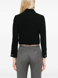 crepe jacket Highlights - Black - Crepe texture - Front button fastening - Classic collar - Long sleeves - Buttoned cuffs - Two button-fastening chest pockets - Two side welt pockets - Full lining - Straight hem - Cropped Imported Composition Lining: Polyester 100% Outer: Triacetate 70%, Polyester 30% SIZE & FIT Model measurements Height 5 ft 9 in(1.76 m) Bust/Chest 34.25 in(87 cm) Hips 35.82 in(91 cm) Waist 23.62 in(60 cm) FittingInformation Designed for a relaxed fit, this piece allows for comfort and movement when worn Made from a midweight fabric
