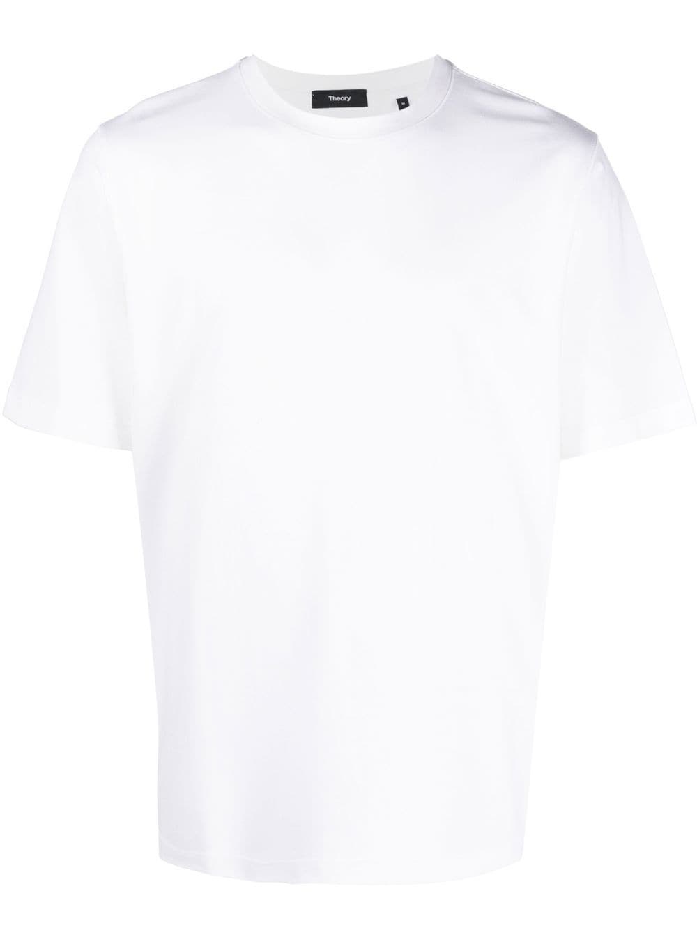 crew-neck short-sleeve T-shirt off white crew neck short sleeves straight hem Imported Composition Viscose 64%, Polyamide 30%, Spandex/Elastane 6% SIZE & FIT Model measurements Height 6 ft 2 in(1.88 m) Bust/Chest 36.61 in(93 cm) Hips 35.82 in(91 cm) Waist 27.95 in(71 cm) Measurement CHEST 40.94 in(104 cm) SLEEVE LENGTH 18.11 in(46 cm) LENGTH 26.37 in(67 cm) Shoulder Width 17.32 in(44 cm) FittingInformation This piece fits true to size. We recommend you get your regular size Cut for a relaxed fit Made with a mid-weight stretch fabric Washing instructions Machine Wash