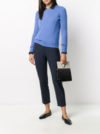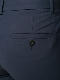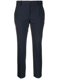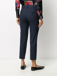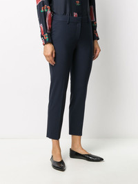 cropped tailored trousers Highlights - Navy blue - Wool blend - Low-rise - Belt loops - Concealed front button fastening - Two side slit pockets - Two rear welt pockets Imported Composition Lining: Cupro 100% Outer: Wool 96%, Spandex/Elastane 4% SIZE & FIT Model measurements Height 5 ft 11 in(1.8 m) Bust/Chest 33.07 in(84 cm) Hips 37.4 in(95 cm) Waist 25.19 in(64 cm) FittingInformation This piece fits true to size. We recommend you get your regular size Cut for a slim fit Made with a lightweight stretch fabric Washing instructions Dry Clean Only