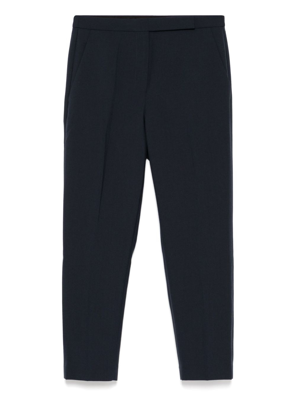 high-waisted slim cropped trousers Highlights - Navy blue - Concealed front button, hook and zip fastening - Two side inset pockets - Rear welt pocket Imported Composition Recycled Polycotton 55%, Virgin Wool 45%