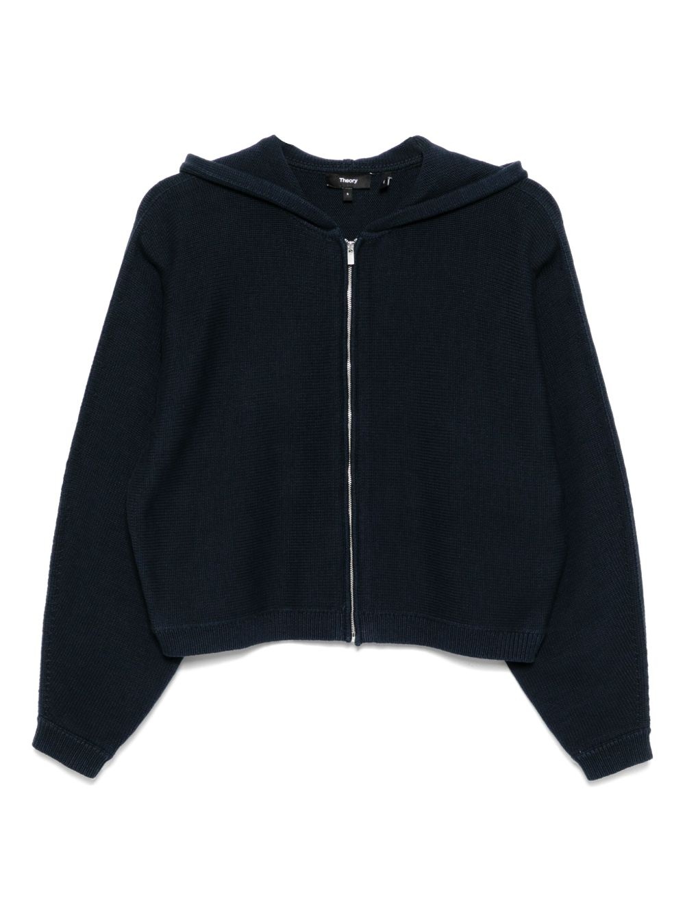 hooded zip-up jacket Highlights - Navy blue - Front zip fastening - Slouchy hood - Long sleeves Imported Composition Outer: Cotton 74%, Nylon 26% SIZE & FIT Model measurements Height 5 ft 10 in(1.78 m) Bust/Chest 29.92 in(76 cm) Hips 34.64 in(88 cm) Waist 24.8 in(63 cm) FittingInformation Designed for a slim fit that sits just away from the body offering a close yet comfortable fit Made with a midweight knit, this piece offers some stretch