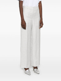 houndstooth-pattern trousers Highlights - Grey - Concealed front fastening - Two side slit pockets - Two rear welt pockets - Pressed crease Imported Composition Lining: Polyester 100% Outer: Linen/Flax 52%, Viscose 48% SIZE & FIT Model measurements Height 5 ft 11 in(1.8 m) Bust/Chest 32.67 in(83 cm) Hips 36.22 in(92 cm) Waist 24.4 in(62 cm) FittingInformation Designed with a wide-leg cut, these trousers allow for a close fit at the waist and offer a loose and roomy fit over the leg Made from a midweight non-stretch fabric
