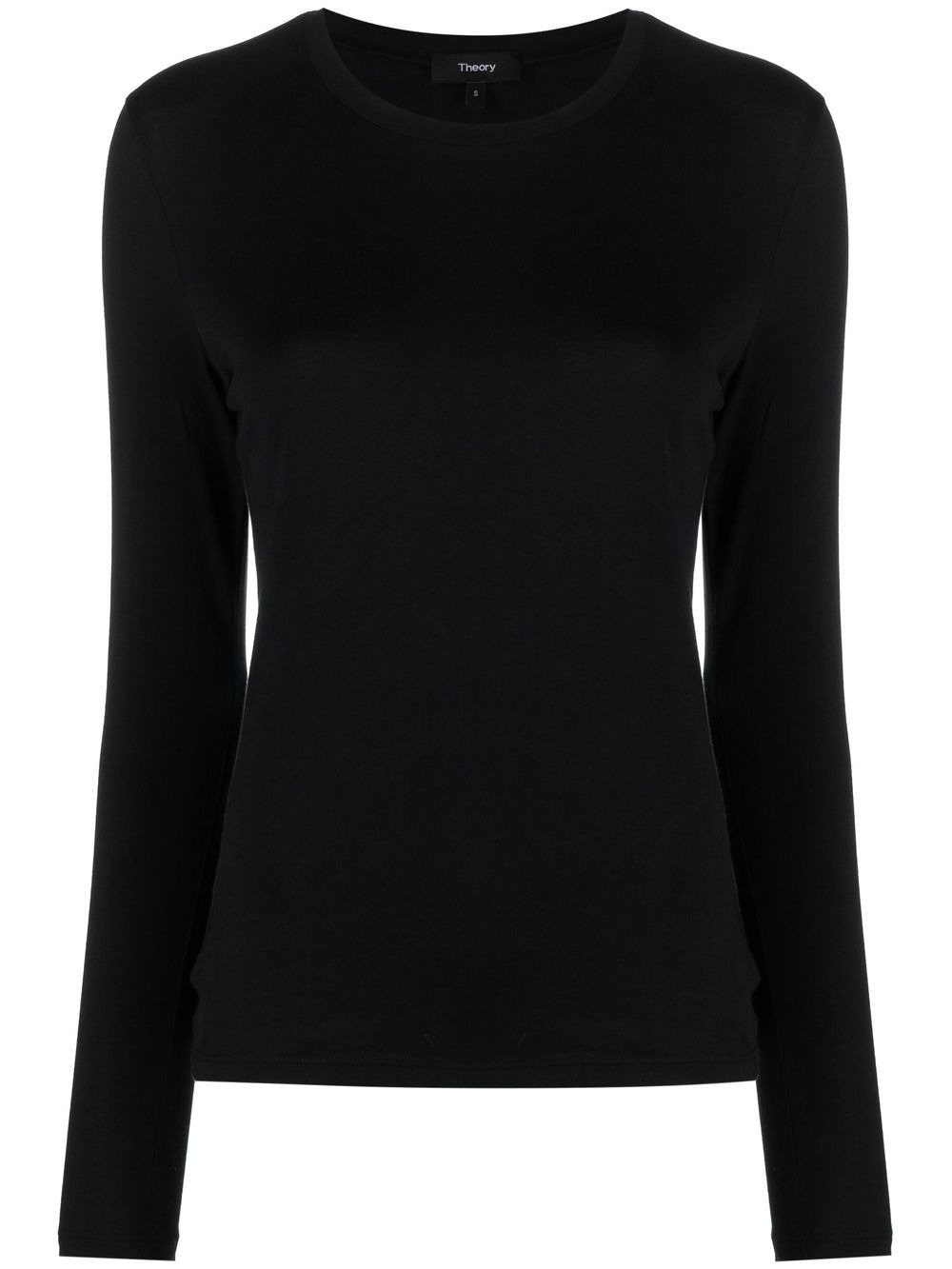 long-sleeved cotton T-Shirt long-sleeved cotton T-Shirt from THEORY featuring black, cotton, jersey knit, crew neck, long sleeves and straight hem. Imported Composition Pima Cotton 100% SIZE & FIT Model measurements Height 5 ft 9 in(1.76 m) Bust/Chest 33.07 in(84 cm) Hips 34.64 in(88 cm) Waist 25.59 in(65 cm) FittingInformation This piece fits true to size. We recommend you get your regular size Cut for a slim fit Made with a lightweight fabric Washing instructions Machine Wash