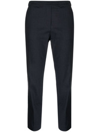 mid-rise cropped trousers Highlights - Prussian blue - Linen/flax - Cotton blend - Slim cut - Rear elasticated waistband - Two side inset pockets - Rear welt pocket - Cropped leg Imported Composition Outer: Linen/Flax 62%, Viscose 36%, Spandex/Elastane 2% Lining: Cotton 69%, Nylon 27%, Spandex/Elastane 4% SIZE & FIT Model measurements Height 5 ft 11 in(1.8 m) Bust/Chest 31.49 in(80 cm) Hips 36.41 in(92.5 cm) Waist 25.59 in(65 cm) FittingInformation Designed for a slim fit that sits just away from the body offering a close yet comfortable fit Cropped in length Made from a lightweight stretch fabric, this piece offers elasticity and flexibility when worn This piece fits true to size – take your usual size