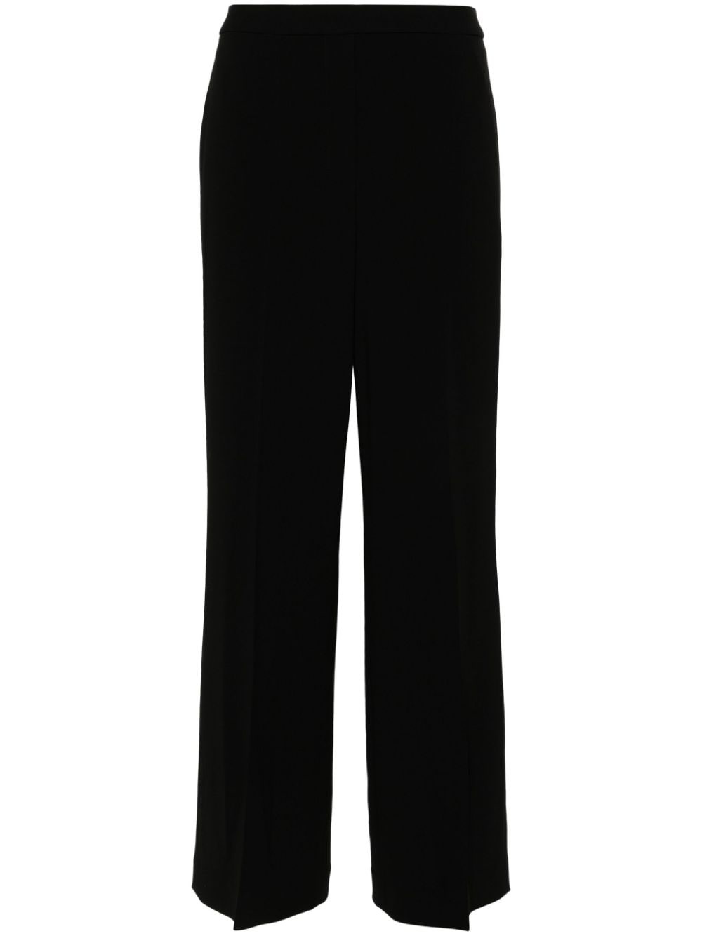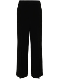 mid-rise wide-leg trousers Highlights - Black - Crepe texture - Pressed crease - Mid-rise - Rear elasticated hem - Two side slit pockets - Rear welt pocket - Tailored cut - Wide leg Imported Composition Outer: Triacetate 70%, Polyester 30% Lining: Polyester 100% SIZE & FIT Model measurements Height 5 ft 11 in(1.8 m) Bust/Chest 33.07 in(84 cm) Hips 37 in(94 cm) Waist 25.59 in(65 cm) FittingInformation Designed with a wide-leg cut, these trousers allow for a close fit at the waist and offer a loose and roomy fit over the leg The partially elasticated waistband offers increased movement and comfort at the waist Made from a midweight non-stretch fabric This piece fits true to size – take your usual size Washing instructions Dry Clean Only