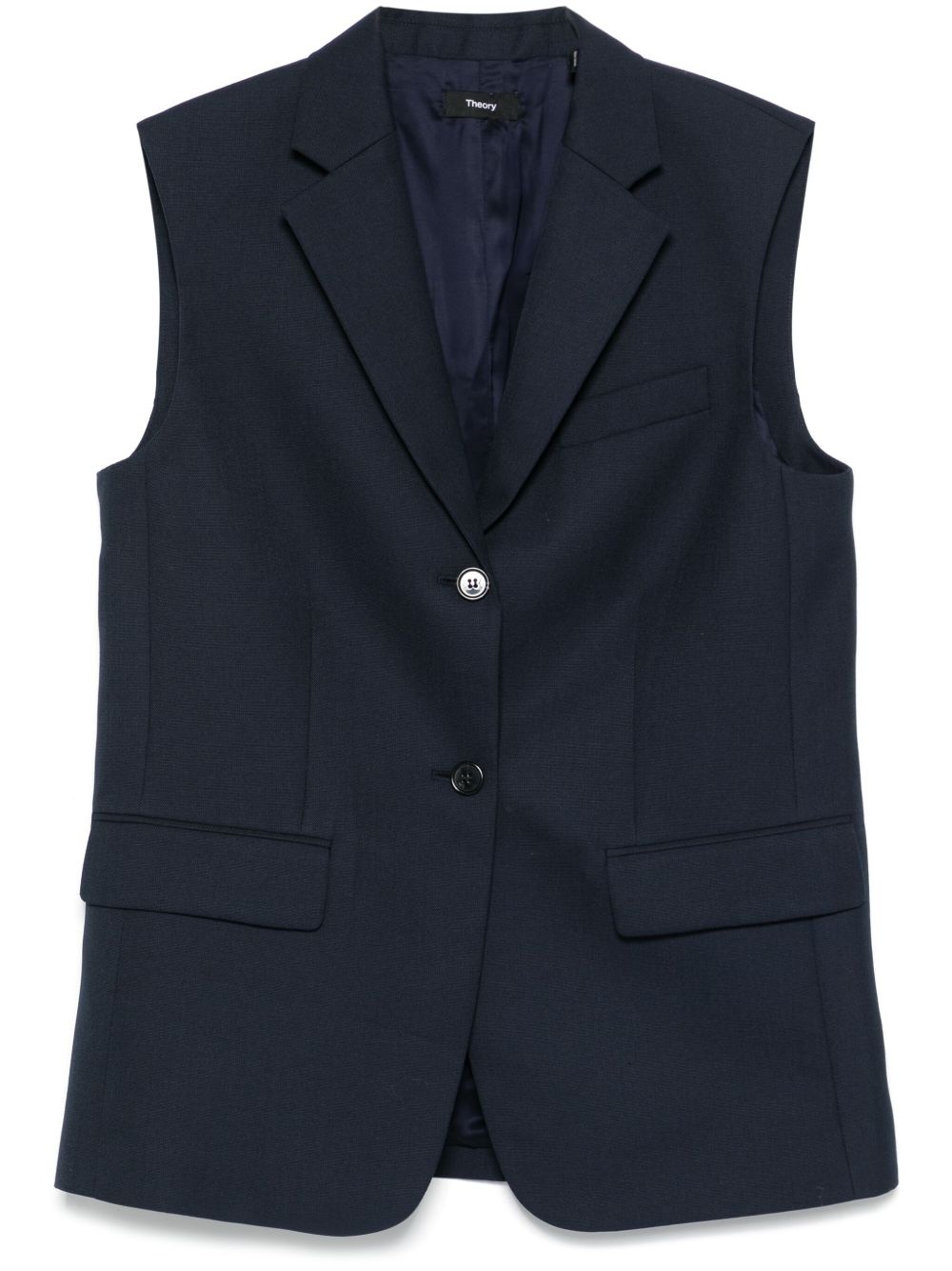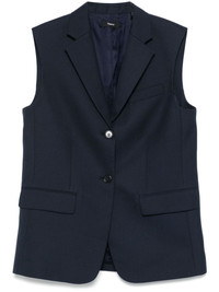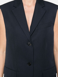 notched-lapels gilet Highlights - Navy blue - Front button fastening - Central rear vent - Chest welt pocket - Two front flap pockets Imported Composition Outer: Wool 60%, Polyester 40% Lining: Cupro 100% SIZE & FIT Model measurements Height 5 ft 10 in(1.78 m) Bust/Chest 33.46 in(85 cm) Hips 36.22 in(92 cm) Waist 23.22 in(59 cm) FittingInformation Designed for a relaxed fit, this piece allows for comfort and movement when worn The vented hem offers movement at the rear Made from a midweight non-stretch fabric